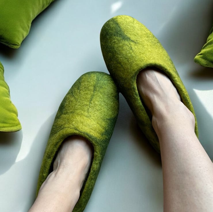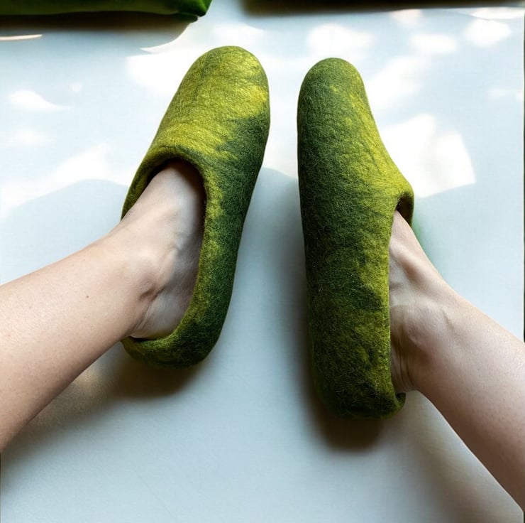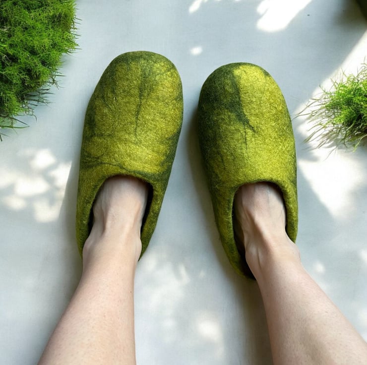 Each pair of felted slippers is made to order using natural wool, soap, water.