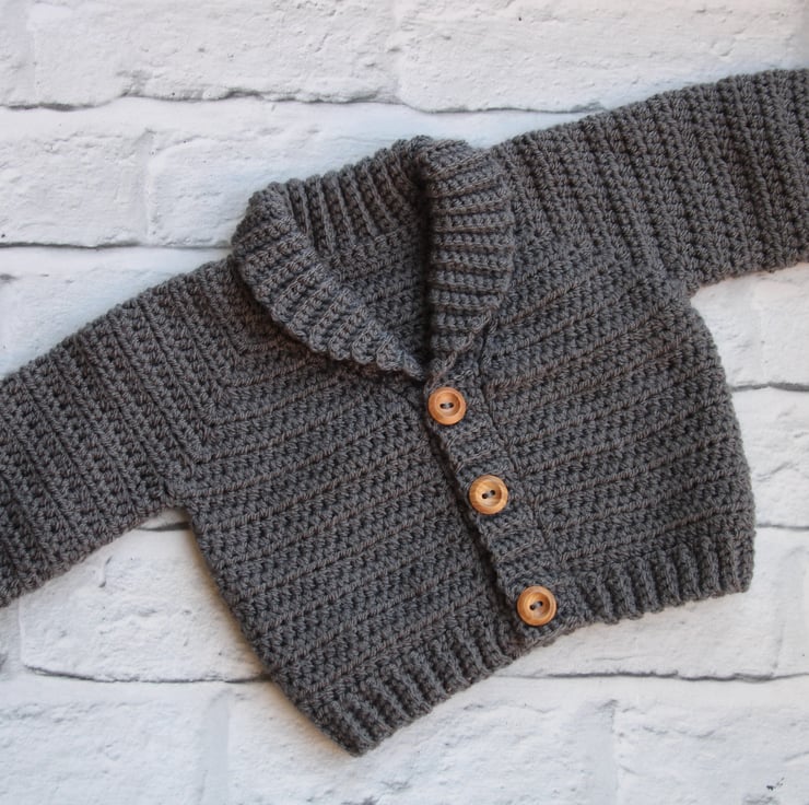Dark grey in colour makes this cardigan unisex in colour. Perfect for a baby boy or a baby girl.