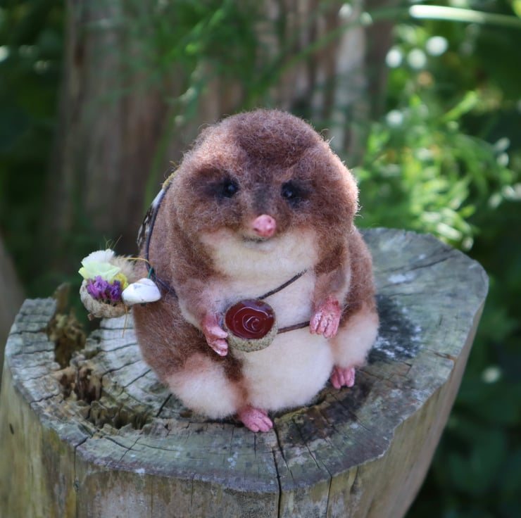 This chunky little fellow is Needle felted from local sheep wool and Corriedale wool over a wire armature. He has glass eyes and his hands, feet and nose are sculptured from wool and beeswax!