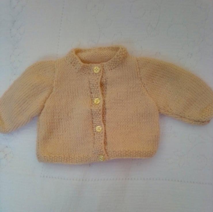 A practical 5 piece layette for baby hand knitted in 4 ply acrylic yarn. The set includes an All in One, Cardigan, Hat, Bootees and Mittens. The set would make a lovely gift for a new baby or a baby shower and would suit either a boy or a girl. The set is also available in two sizes to fit a premature baby.
