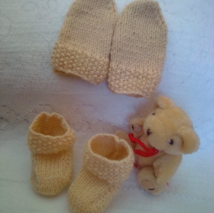 Baby's 5 Piece Hand Knitted Layette, Baby Shower Gift, Prem Sizes Available