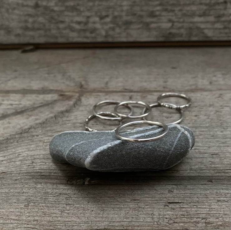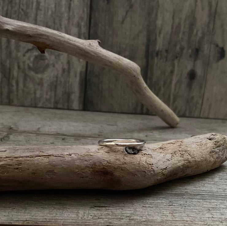 This simple ring band is made from recycled sterling silver, and gently filed and polished to a smooth shine. Can be worn individually, or with other ring bands or stackers.