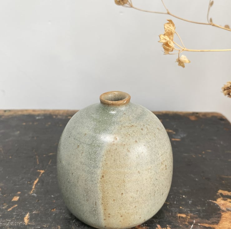A spherical stem vase, wheel thrown in my small garden studio in Chester.