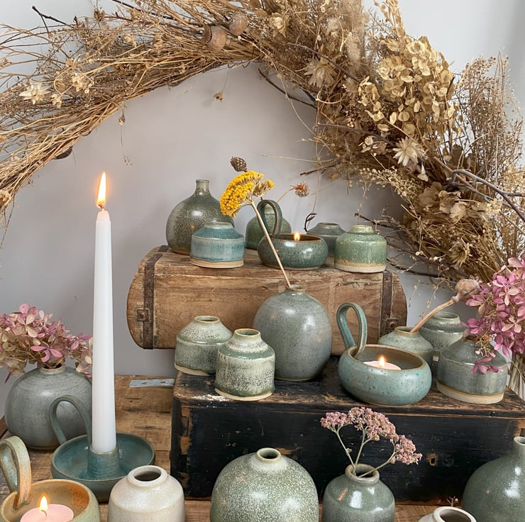 There may be slight variations in glaze and forms due to the materials and handmade processes used. These add unique character and rustic charm to every piece.