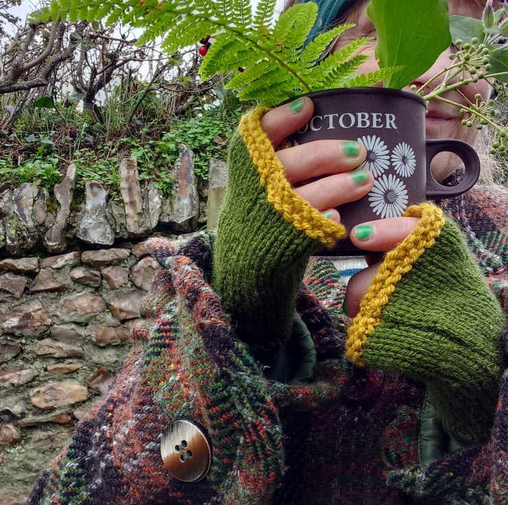 Handmade fingerless mittens. Small to medium size. Cosy autumn colours. Wool with some acrylic so easy to wash and sill keep there shape.