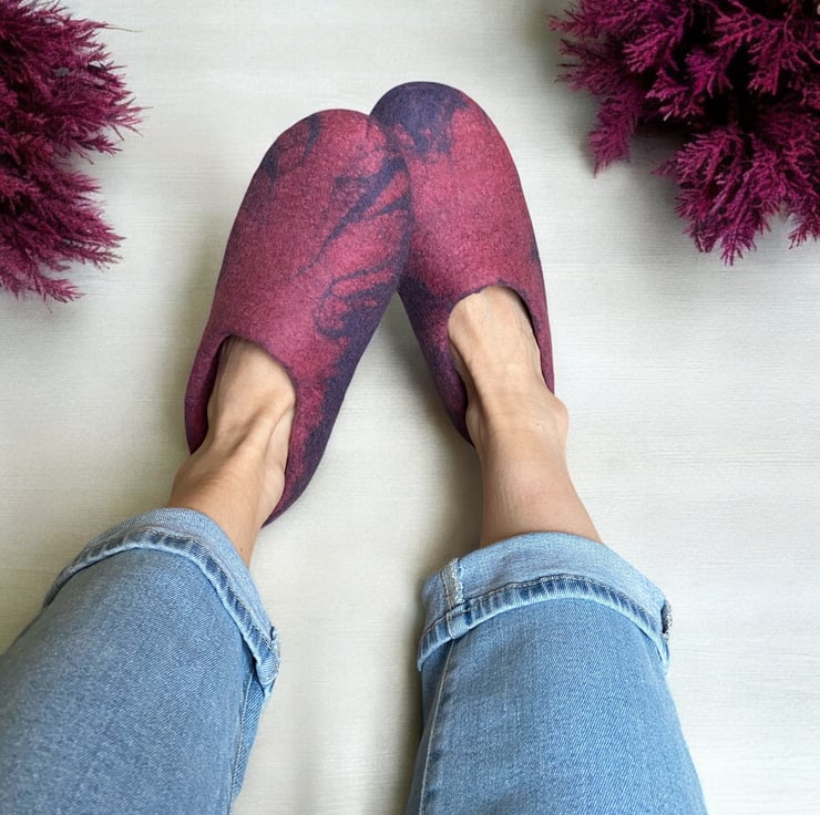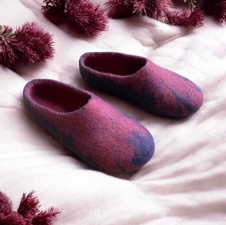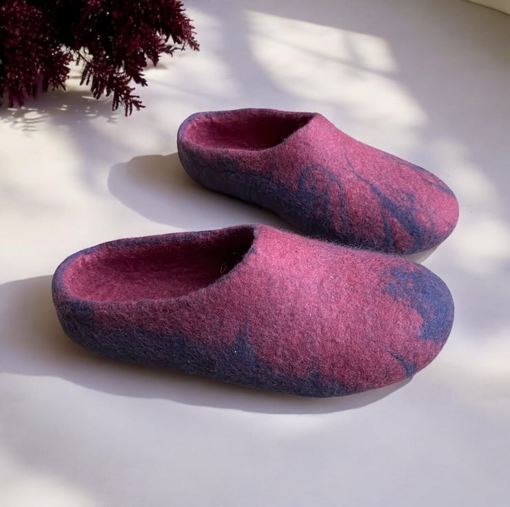 Mulberry Hand Felted Merino Wool Slippers / Clogs