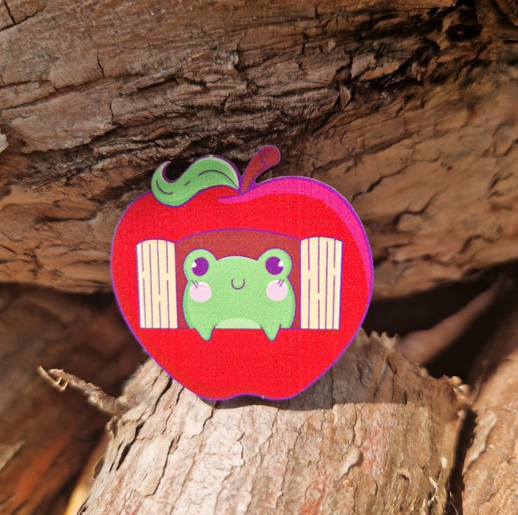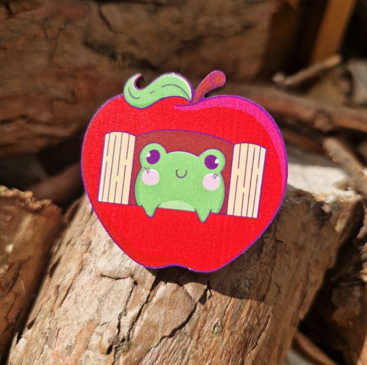 A frog pin that makes a perfect birthday gift or Christmas gift, for the frog lovers, teachers and more! This adorable apple and frog pin is crafted in the UK from FSC wood with a choice of metal or rubber backing, and posted with zero plastic.