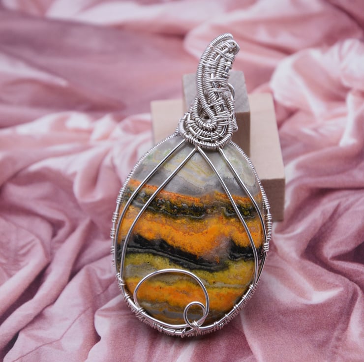 The beauty of a wire wrapped pendant is, that you are actually purchasing a wearable art piece. Each pendant in my collection tells the story of the stone itself. The wrapping is organically created, just as a sculptor would carve out the shape from the stone, so do I wrap the wire in a way to shocase the story within.