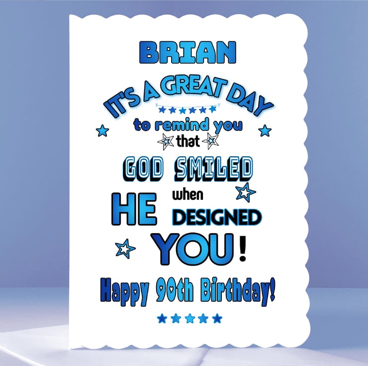 Personalised 90th Birthday Card, Christian Card, God smiled when He designed YOU