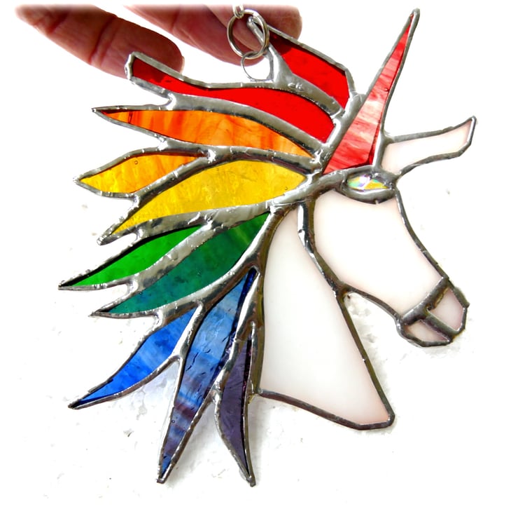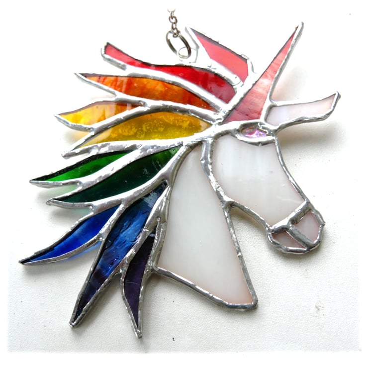 A bright and beautiful piece which will enhance any window and cast its colours across the room when the sun shines through.