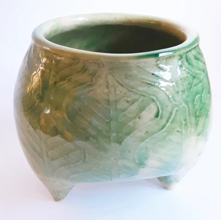 This is a handmade wheel thrown Ceramic Plant Pot Holder
