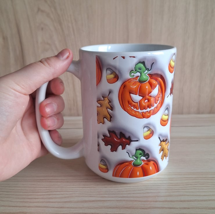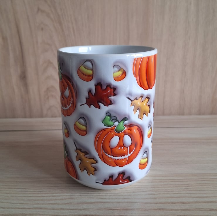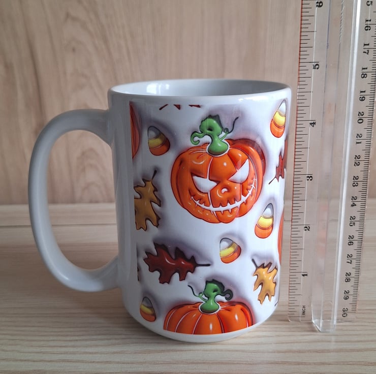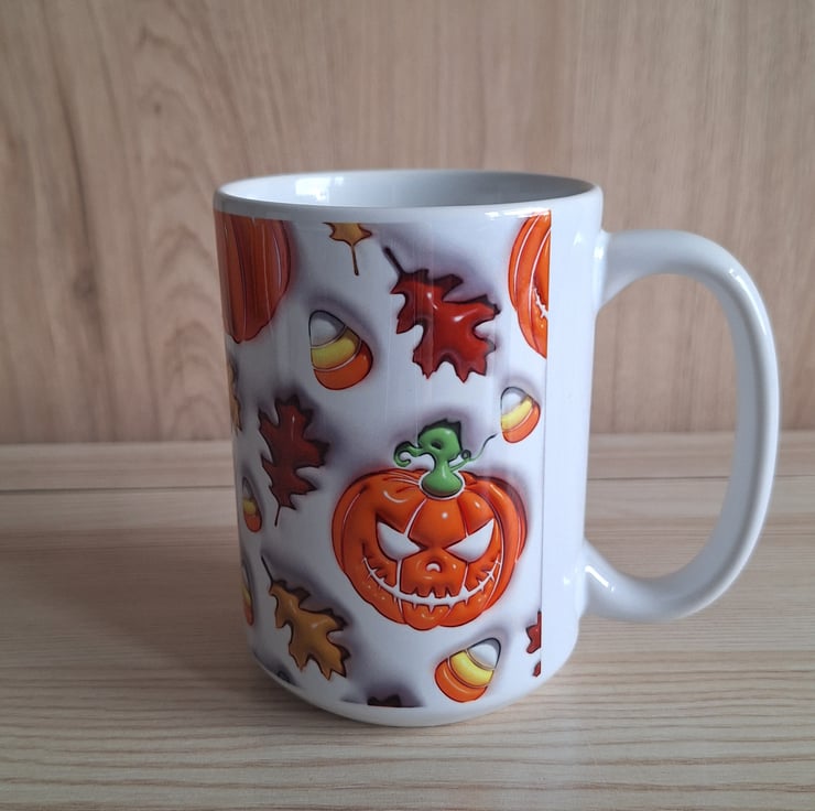 This mug features a spooky pumpkin all around design, it is a larger 15oz size which is great for the coffee lovers out there. This size allows more space for liquid, perfect for those who love hot drinks, and saves refilling as often!!