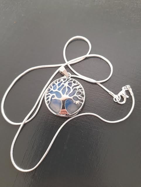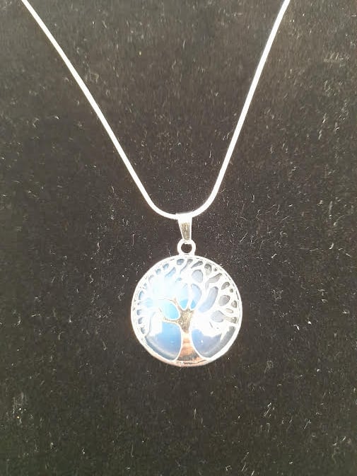 Tree Of Life Necklace Inlaid With Synthetic Opal Crystal