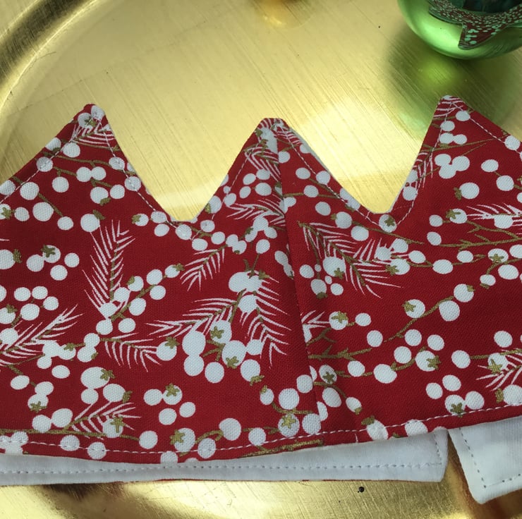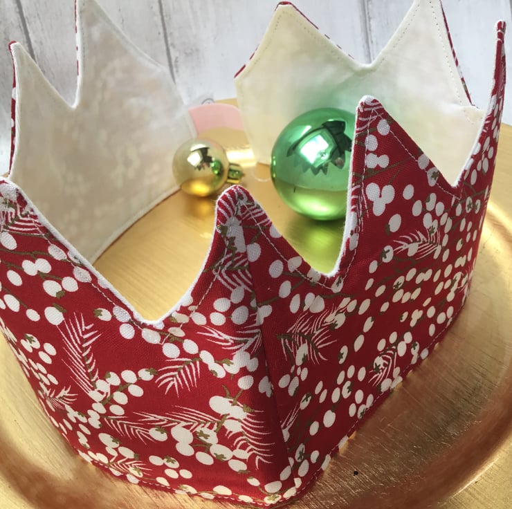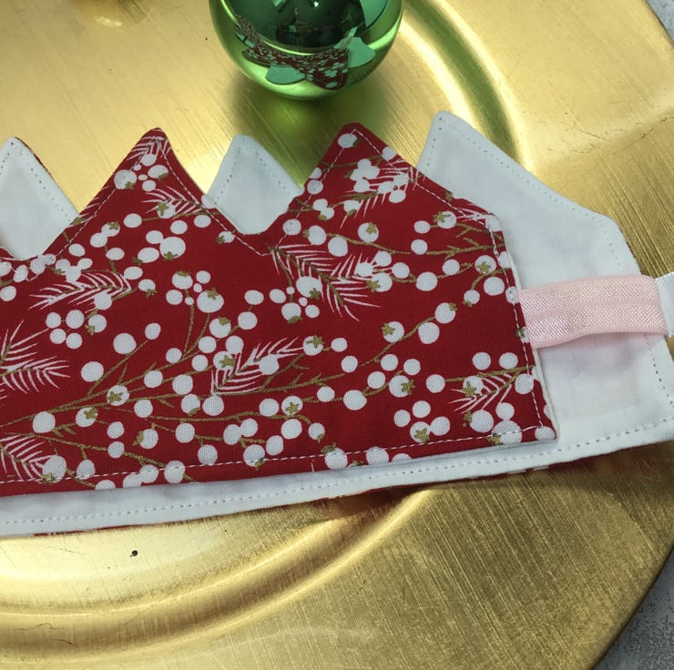If you're trying to live more sustainably, little changes can make all the difference. We sell a range of beautiful crowns, made from a variety of Christmassy cotton fabrics, lined with plain fabrics and given shape and structure by the addition of soft interfacing. They are generally a little over 50cm long, stand about 9cm high and are fitted with a short length of soft elastic or ribbons to join the ends. They will comfortably fit most adult head sizes.
