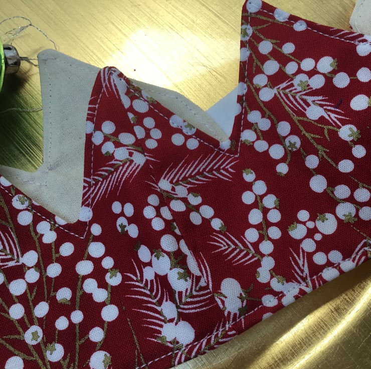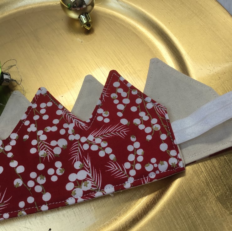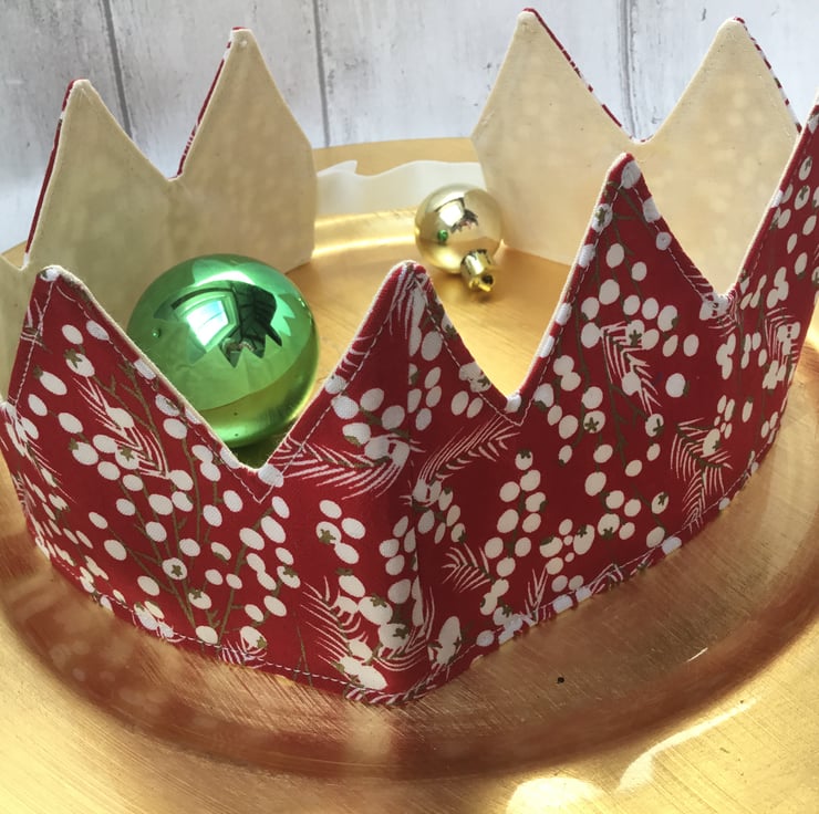 If you're trying to live more sustainably, little changes can make all the difference. We sell a range of beautiful crowns, made from a variety of Christmassy cotton fabrics, lined with plain fabrics and given shape and structure by the addition of soft interfacing. They are generally a little over 50cm long, stand about 9cm high and are fitted with a short length of soft elastic or ribbons to join the ends. They will comfortably fit most adult head sizes.