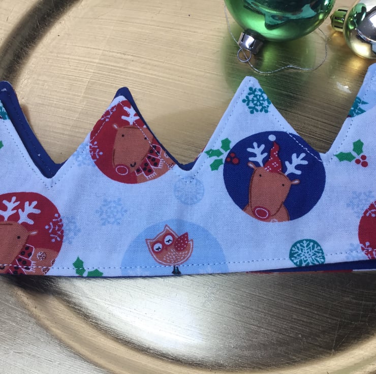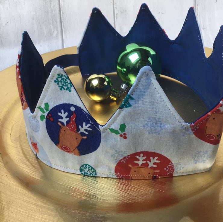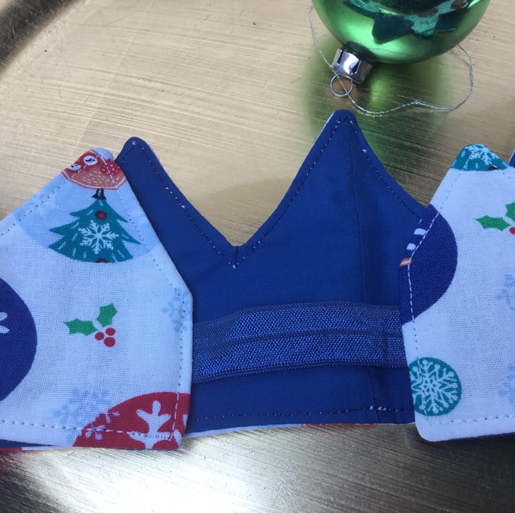 If you're trying to live more sustainably, little changes can make all the difference. We sell a range of beautiful crowns, made from a variety of Christmassy cotton fabrics, lined with plain fabrics and given shape and structure by the addition of soft interfacing. They are generally a little over 50cm long, stand about 9cm high and are fitted with a short length of soft elastic or ribbons to join the ends. They will comfortably fit most adult head sizes.