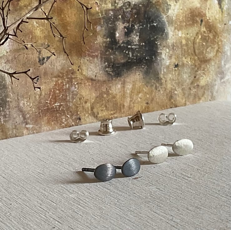The earrings are maintenance free although rubbing with a clean dry cloth will maintain the shine. However do not rub the oxidised (dark grey) earrings as this would remove the colour.