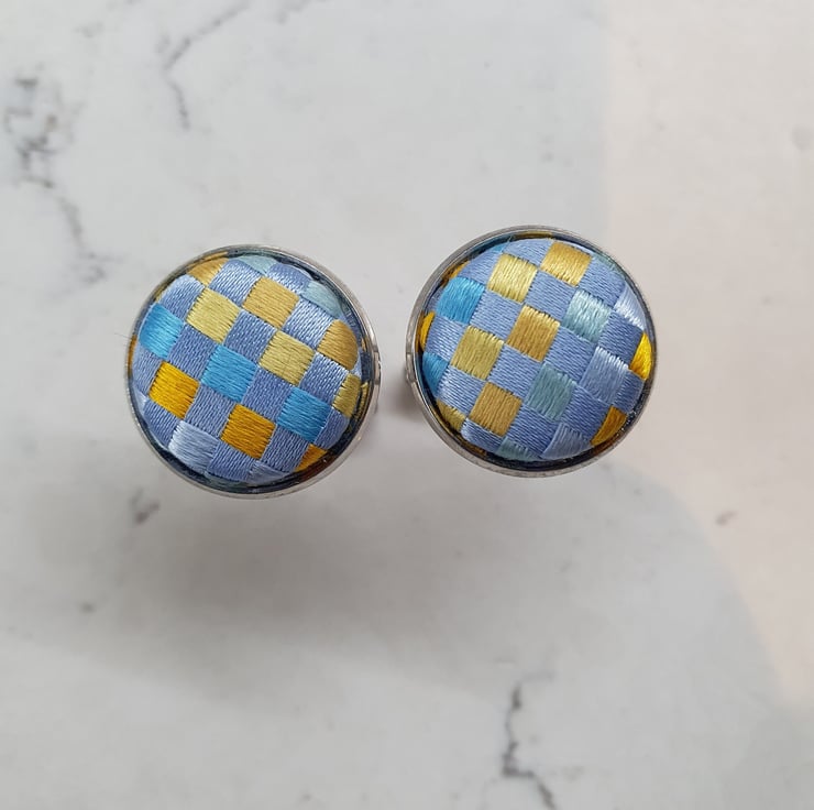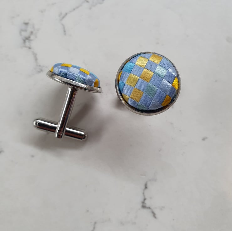 Unique handmade upcycled cufflinks made with hypoallergenic surgical steel. This statement men's accessories are one of a kind, and handmade using silk fabrics from neckties. Perfect gift for him.