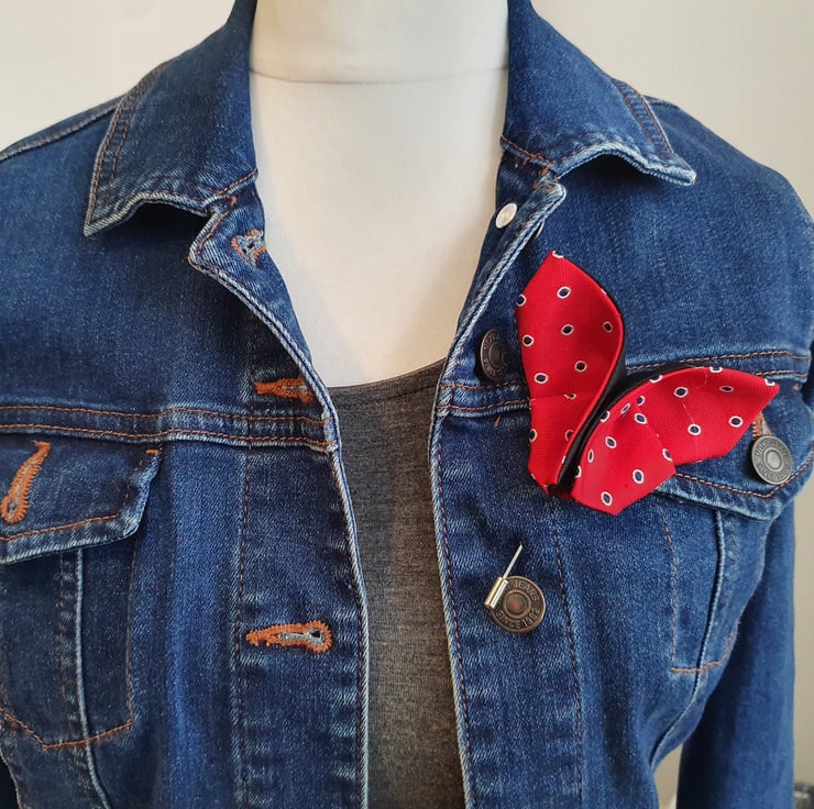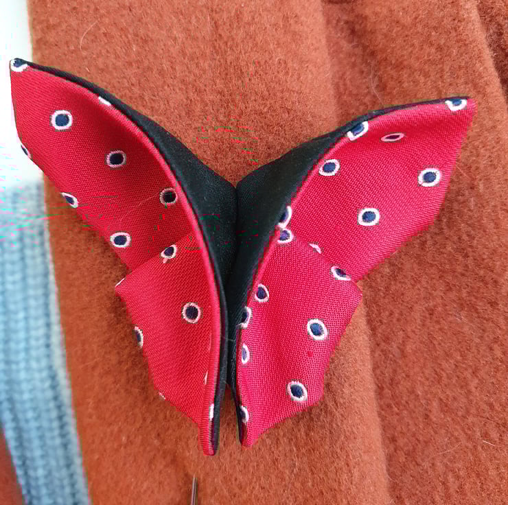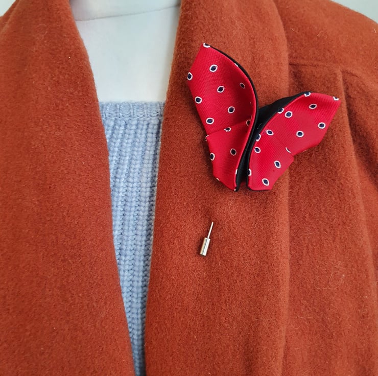 A lovely butterfly origami brooch upcycled from ties. An one of a kind lapel pin that will brighten up your coat, jacket, that classic timeless twin set etc you can dress it up or down as you wish.