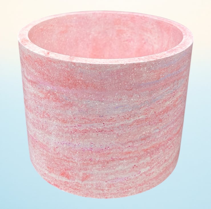 This one-of-a-kind plant pot, with its unique lilac and raspberry swirl colour, is a true standout. Handcrafted from premium alpha plaster called Cassini's, commonly used in marble restoration and repair work, it boasts a smooth, luxurious finish akin to marble. Plus, it's both water and weather-resistant, making it a durable and stylish addition to any home.