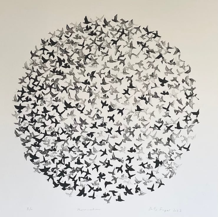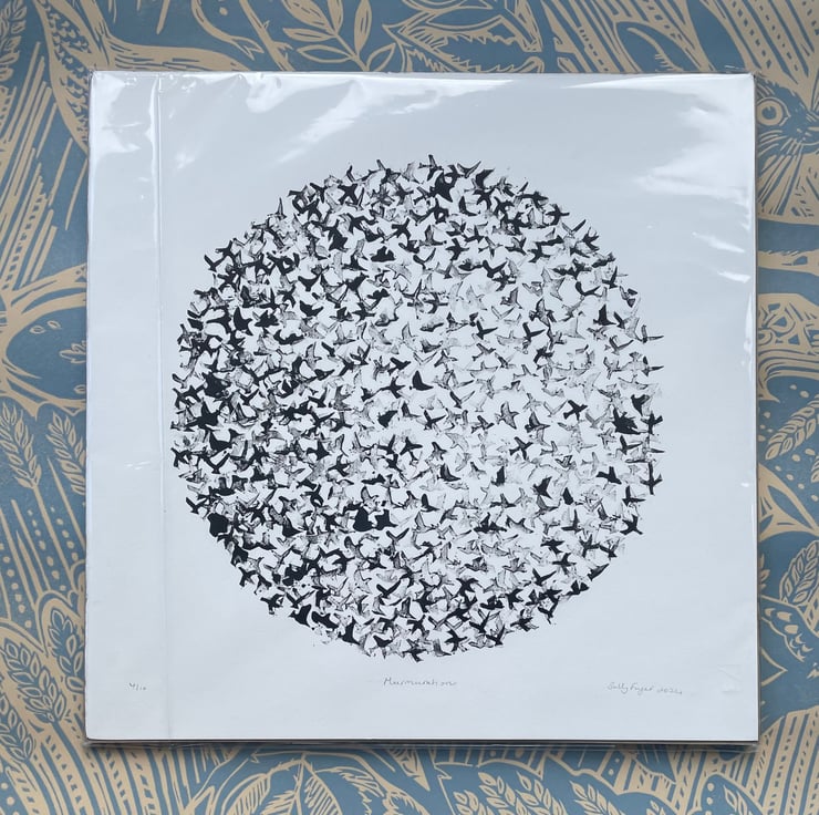 I was inspired to make this after seeing many beautiful starling murmurations in my local area. I find them incredibly magical and meditative and wanted to try to capture this in a print.