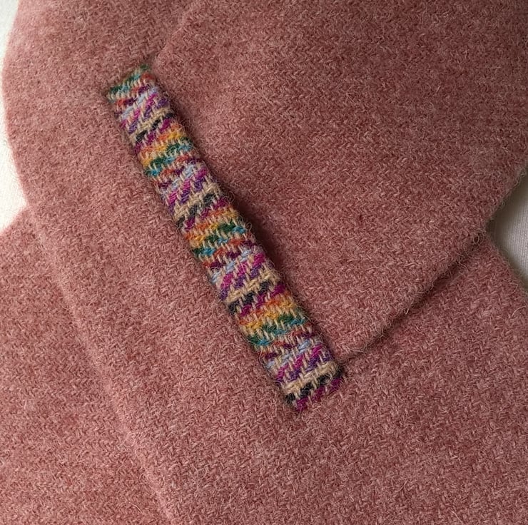 The stunning Harris Tweed wool, in dusky pink with peachy under tones, is lined with vintage pink fine cotton denim.