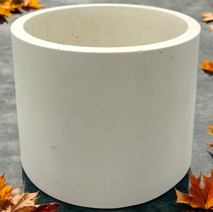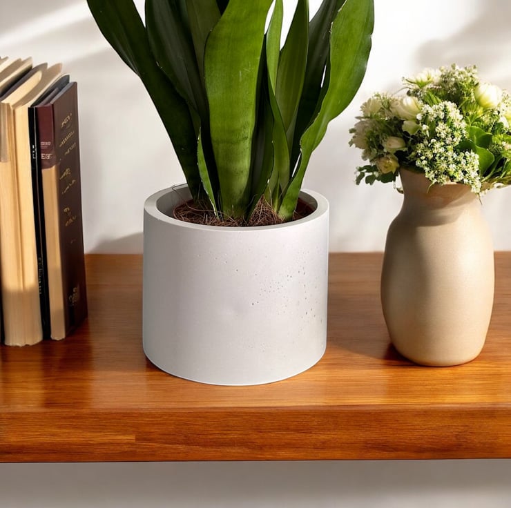 This white plant pot is handcrafted from premium alpha plaster called Cassini's. This plaster is often used for marble restoration and repair work and has a smooth, luxurious finish, akin to marble, and is both water and weather-resistant. No colour was added to the plaster and the white colour is its natural colour. This neutral colour means it fits in with most interior aesthetics, making it ideal to give as a gift or a lovely treat for yourself.