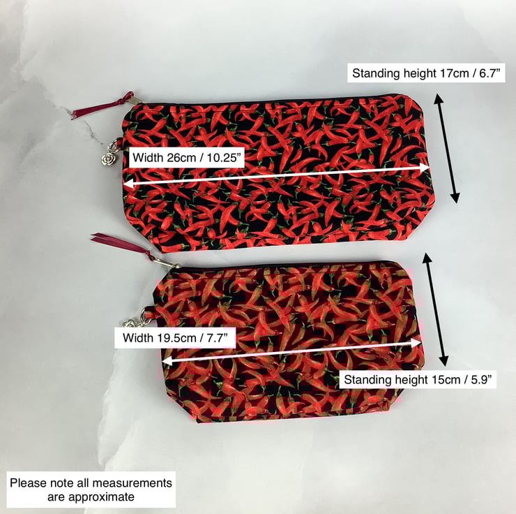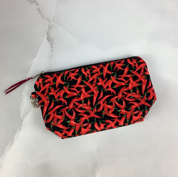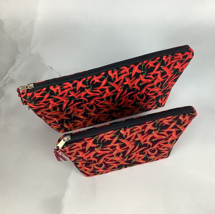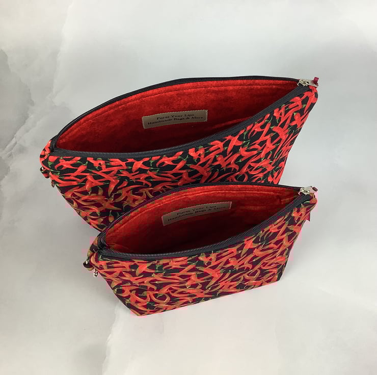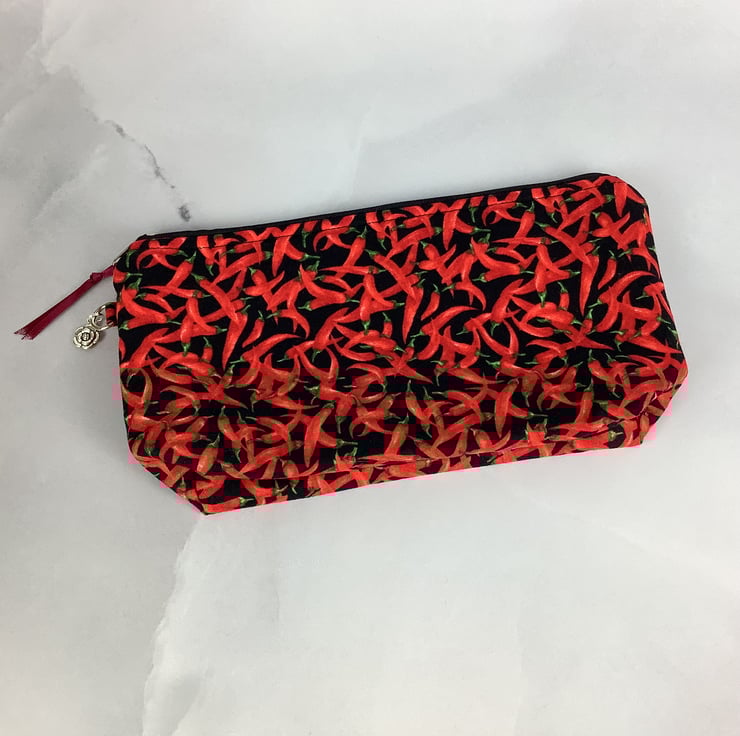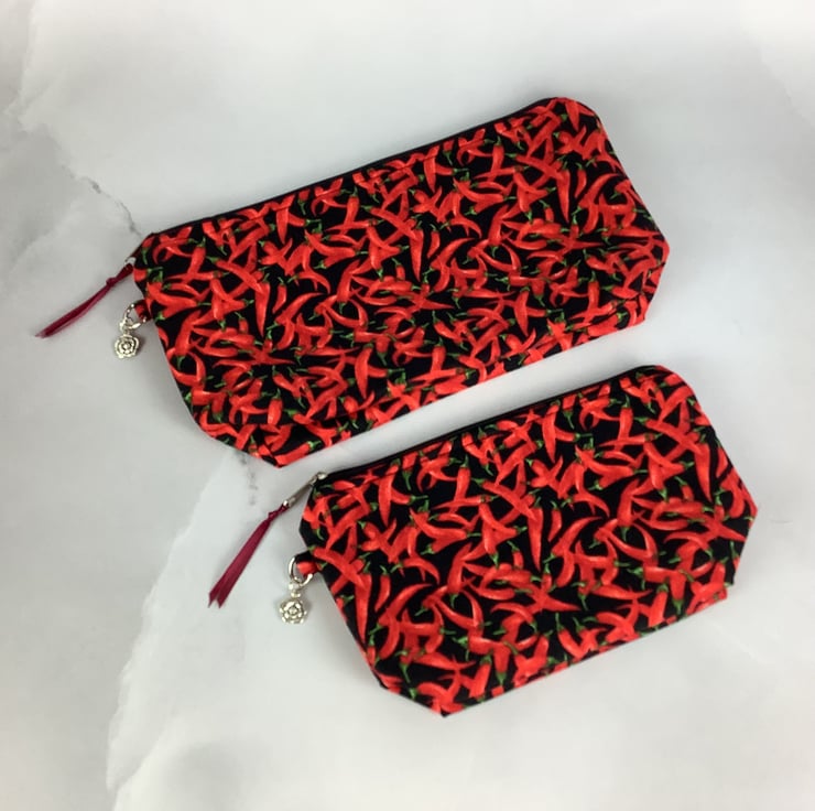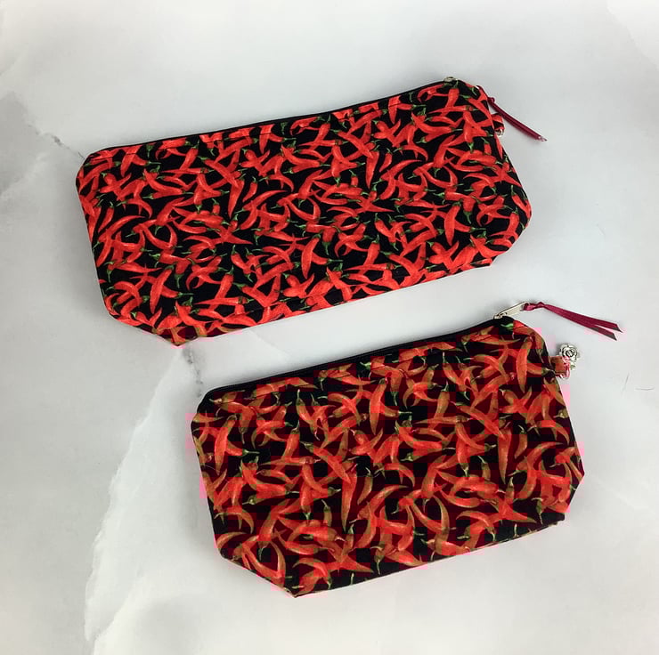 Chillis zip bag, Peppers makeup bag, 2 size options, Handmade