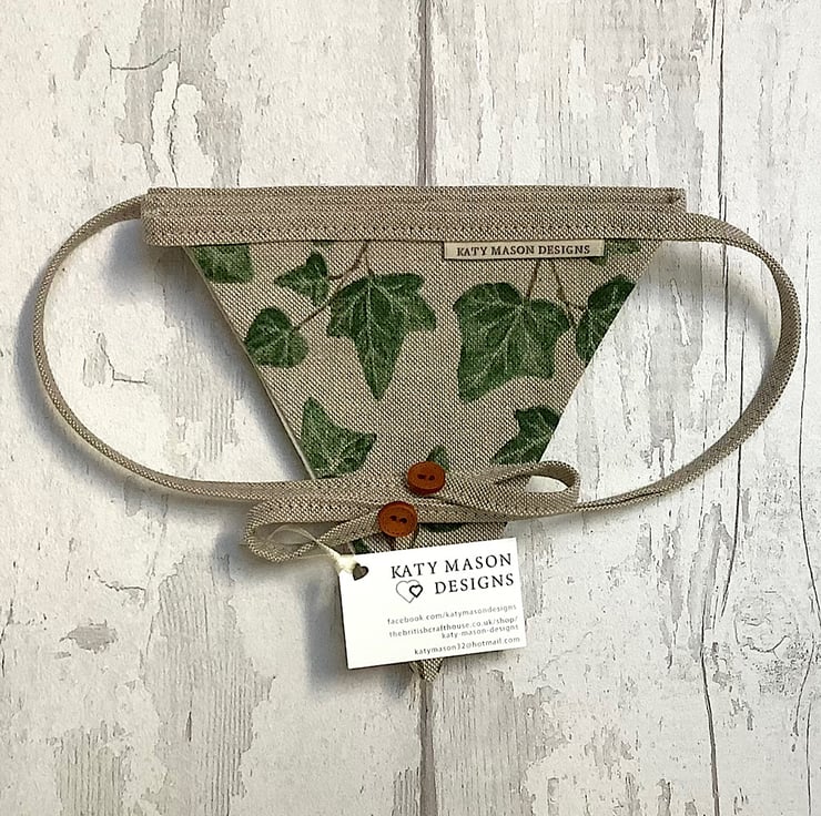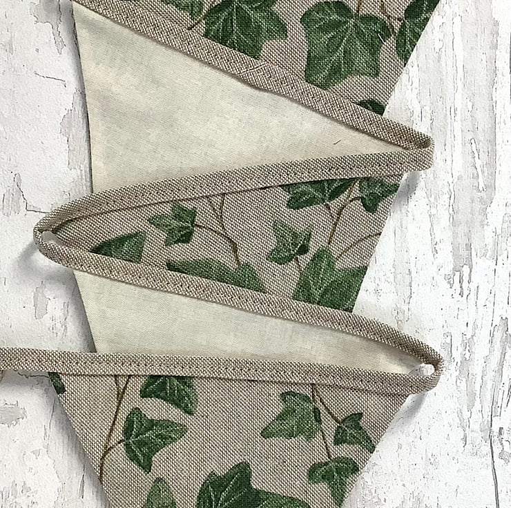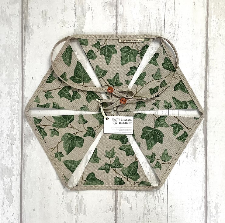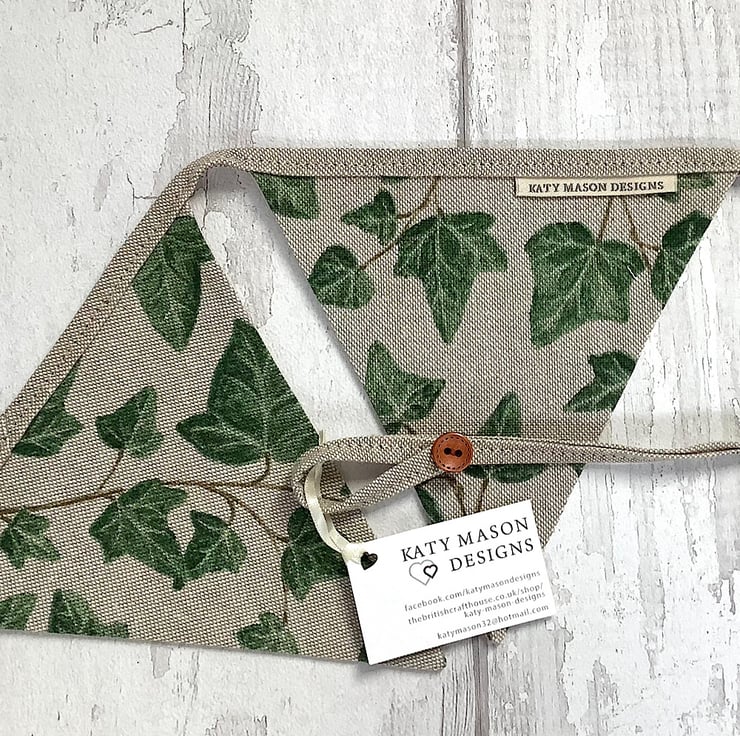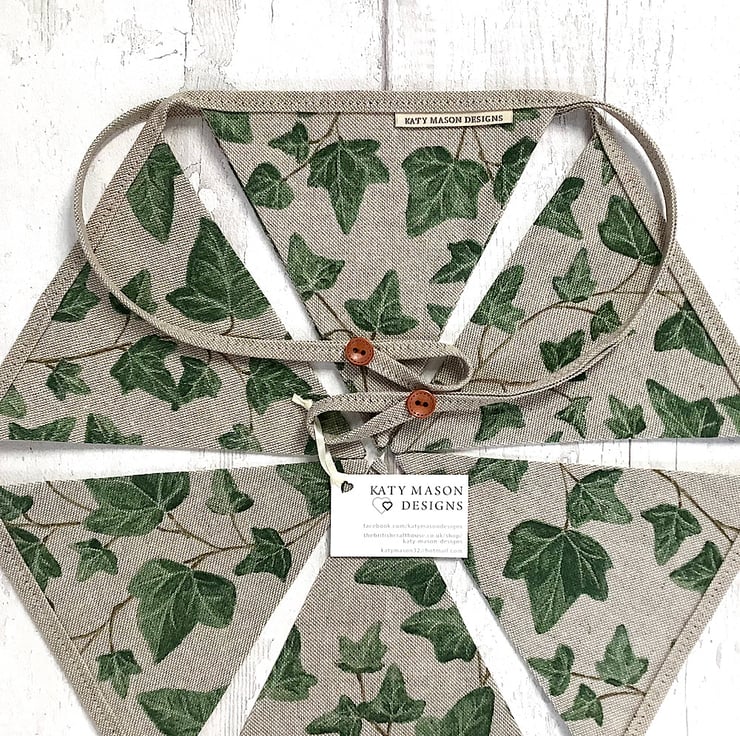 Christmas bunting in a pretty nature inspired ivy print. 7 flags backed with cream cotton. Loops and button detail. 165cm from loop to loop.