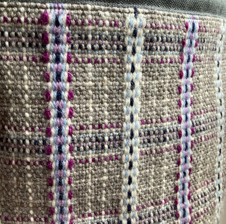 Handwoven wool fabric in shades of damson, pale blue, navy & lavender along with natural shades of grey and ecru wool - all British wool.
