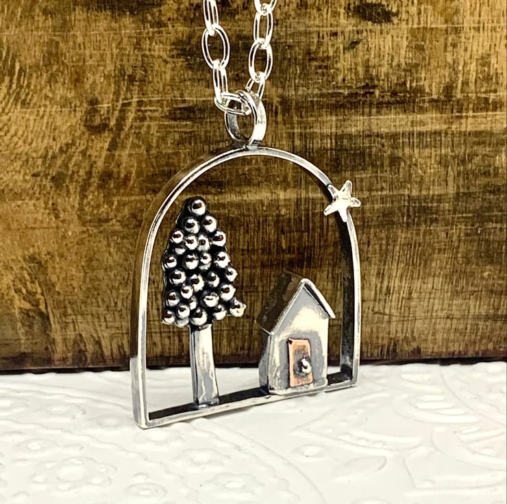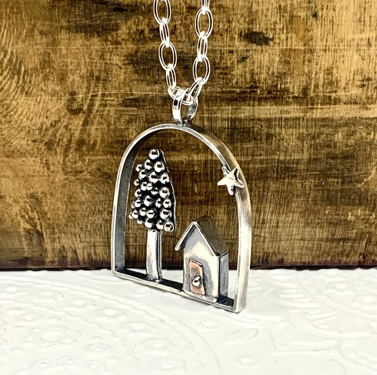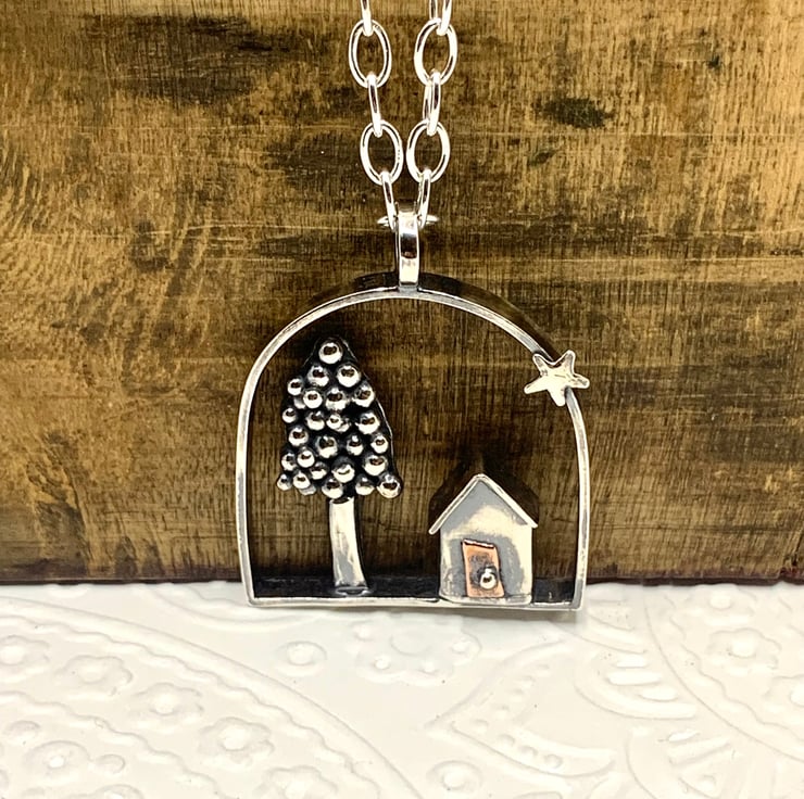 Hand Crafted Silver Tree & Beach Hut Necklace