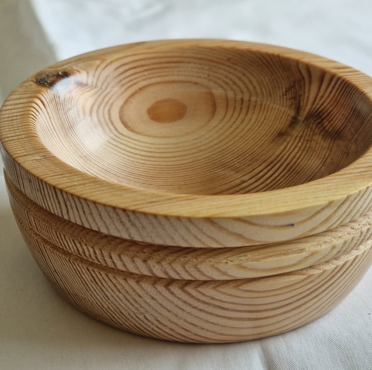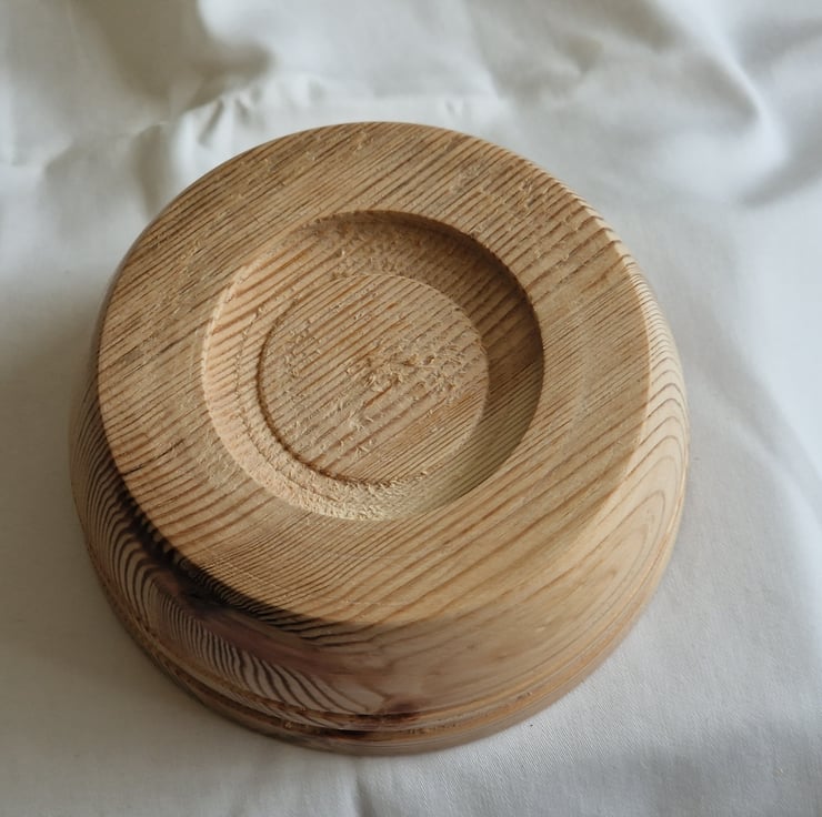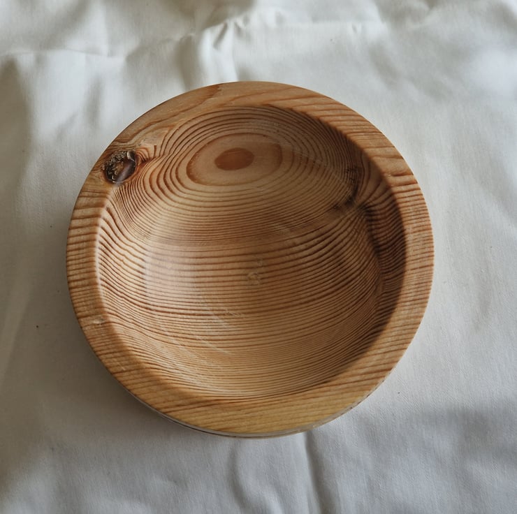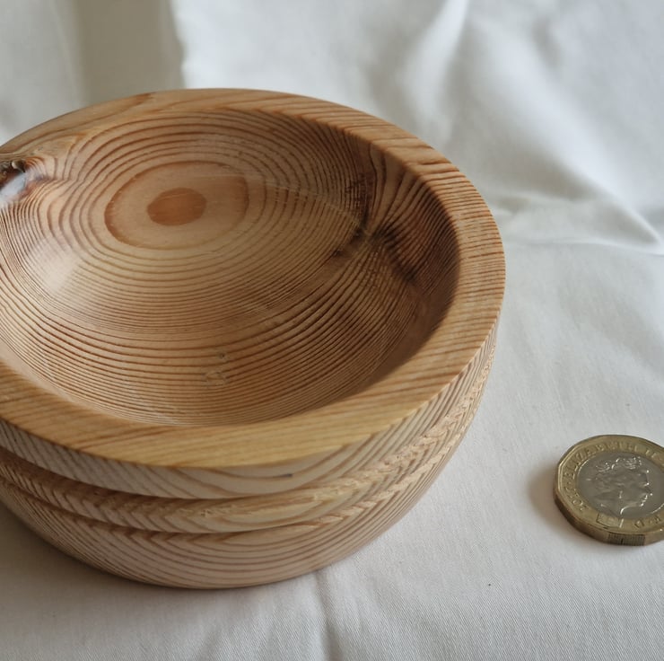This little dish was turned on a lathe from a single piece of wood. It is ideal for keeping rings, other jewellery, coins and small trinkets etc. It was completed by sanding and the application of a wax polish to give a satin finish. The dish is 94mm diameter and is 37mm deep. It weighs 89g.