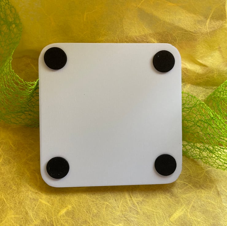 It measures approx 9.5cm x 9.5cm and has a matt varnish finish