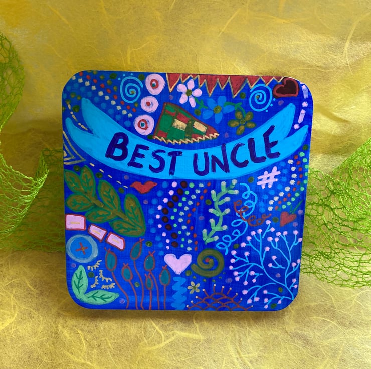 This BEST UNCLE coaster has been hand painted in an abstract doodle design making it an original gift.