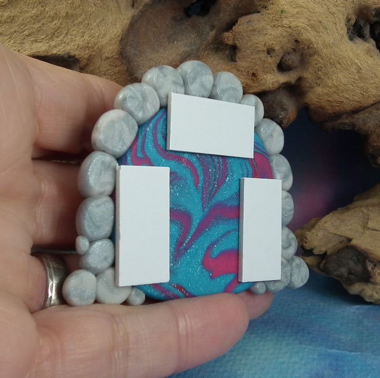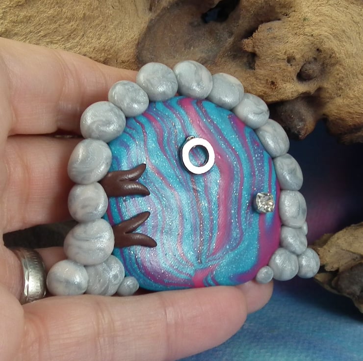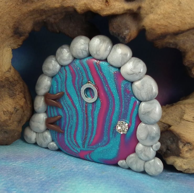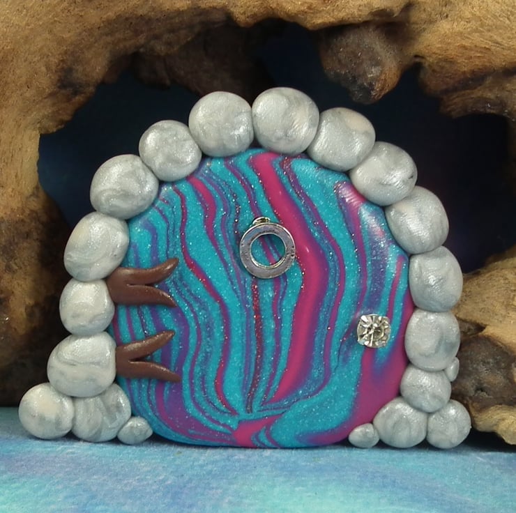 This is a 'one of a kind' creation having been entirely handmade without the use of moulds here at my studio on the Sussex Coast. Modelled with artist blend polymers before sealing with lacquer. The door is two and a half inches high and can be attached to any flat surface with pads on reverse.