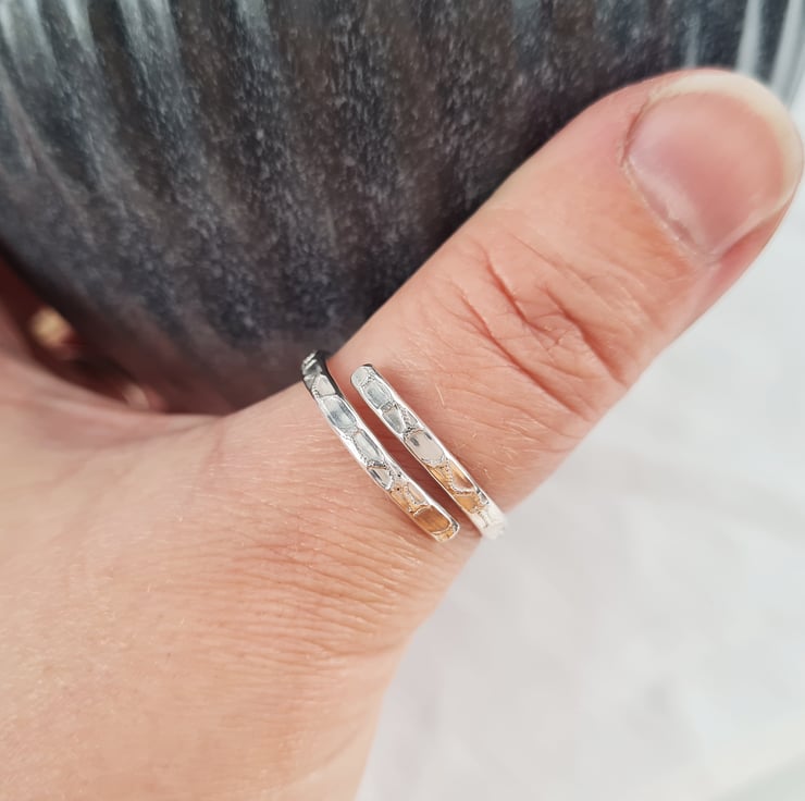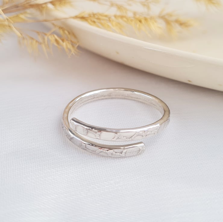Stunningly simple silver wrap rings lovingly handmade and inspired by the beauty of nature, embossed with a Bark effect texture.