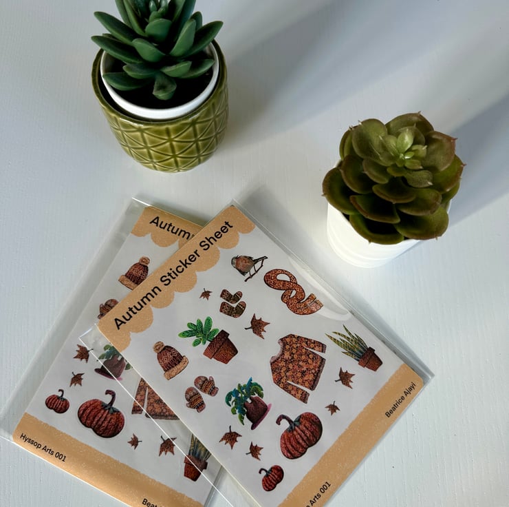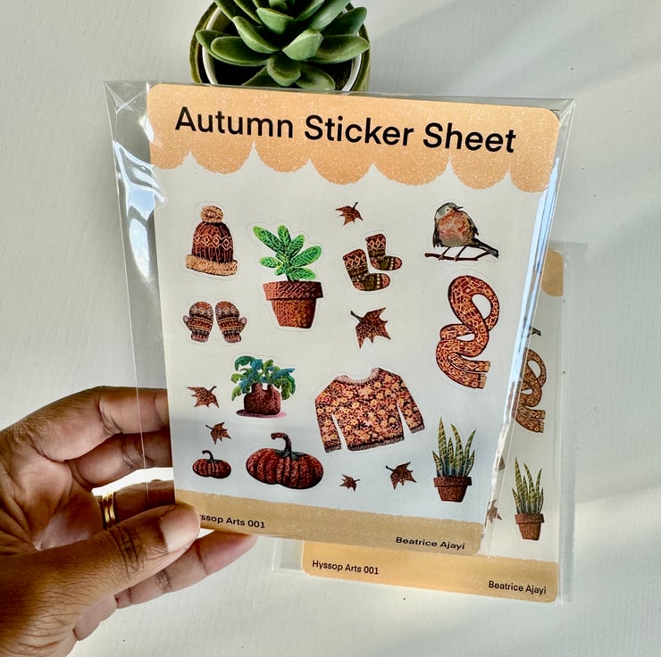 Single Autumn inspired Glossy Sticker Sheet. Illustrated using procreate app. I print and cut using my silhouette portrait cutting machine.