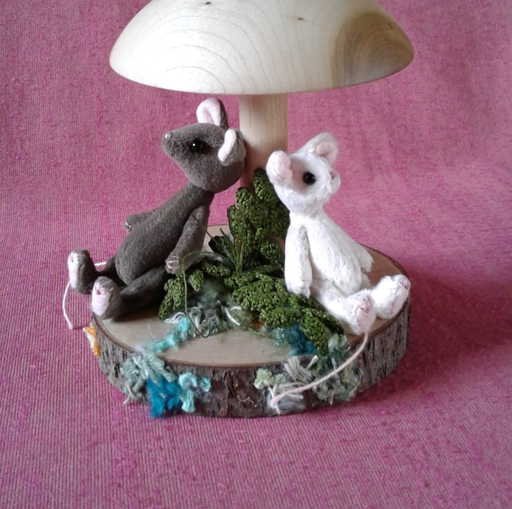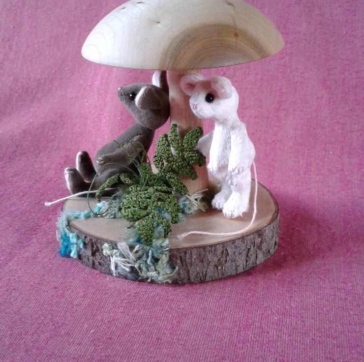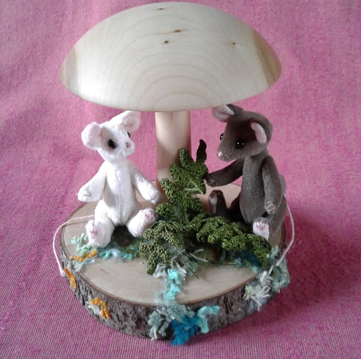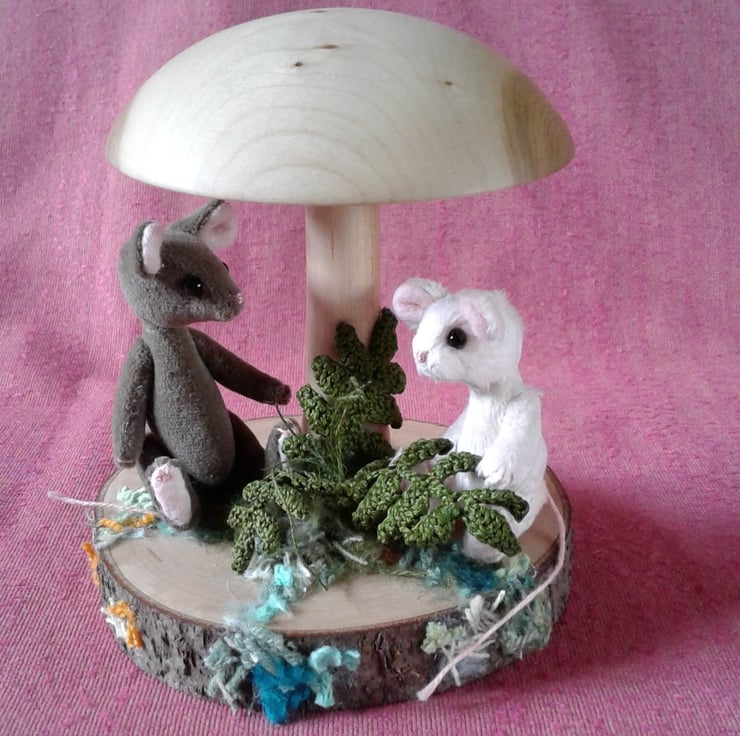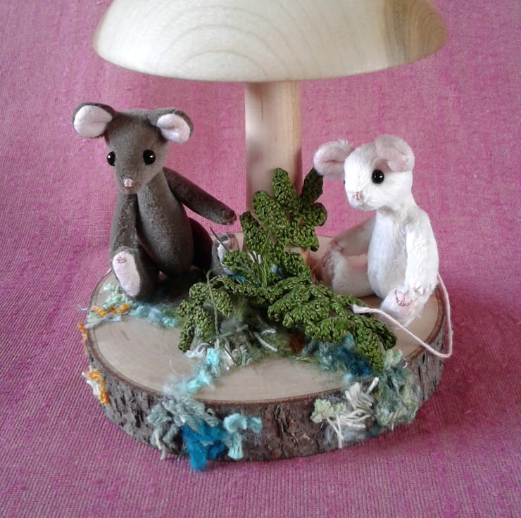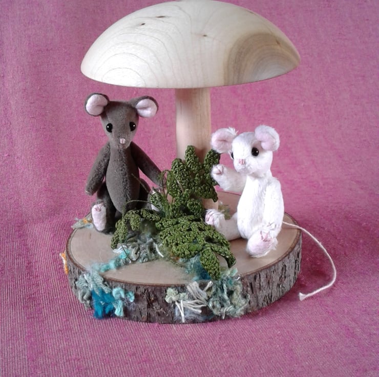 They have been having a lovely relaxing snooze under a mushroom in among the moss and ferns but then woke refreshed and had a play around as mice like to do.