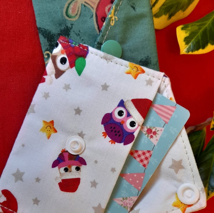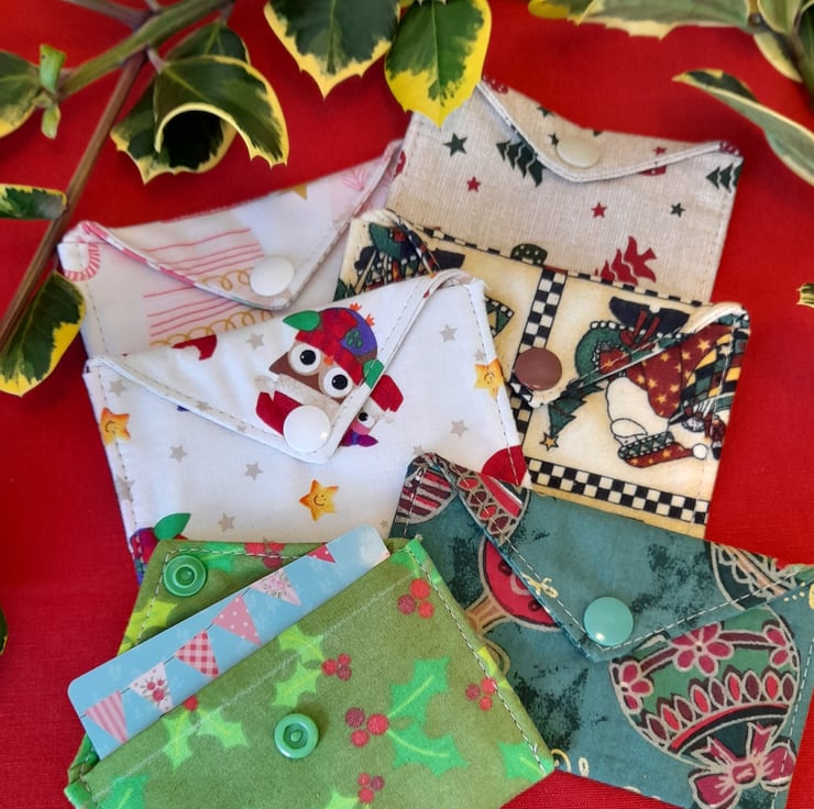 Enhance your giving with these Gift Card Wallets. A simple way to dress up a gift card. They are made from seasonal designed cotton fabric and are big enough to hold a bank card sized gift card or cash.