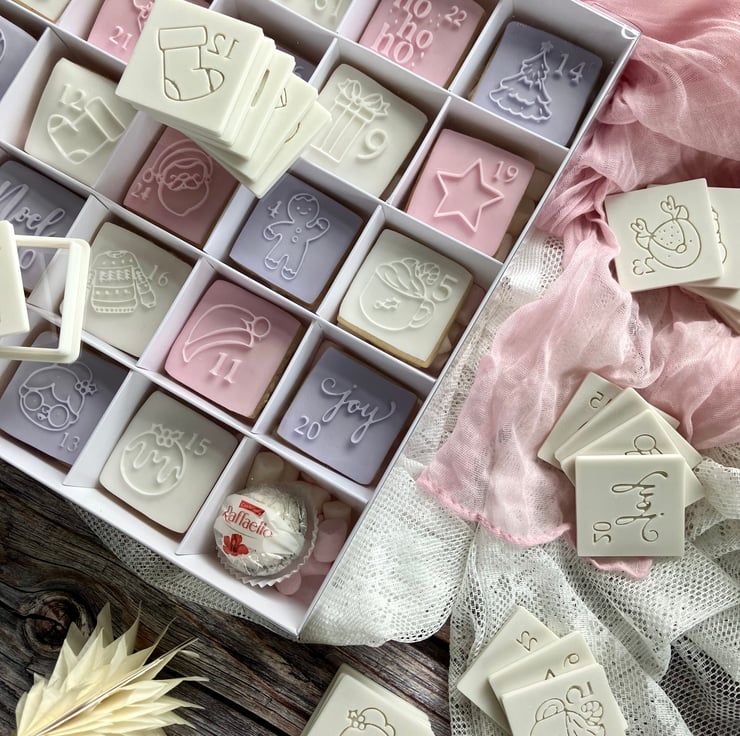 Each piece creates a 4x4cm cookie to create a cookie countdown calendar