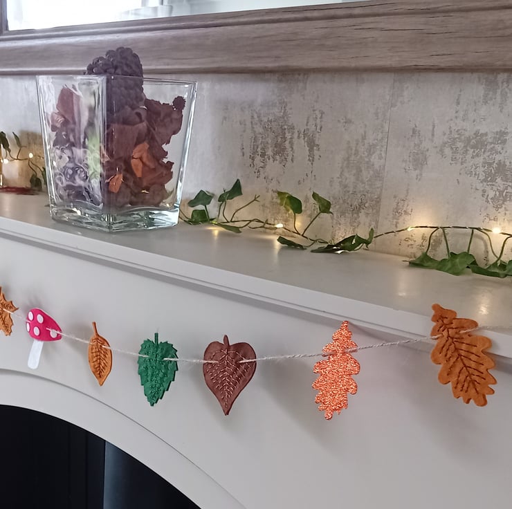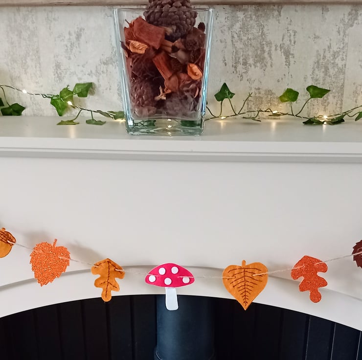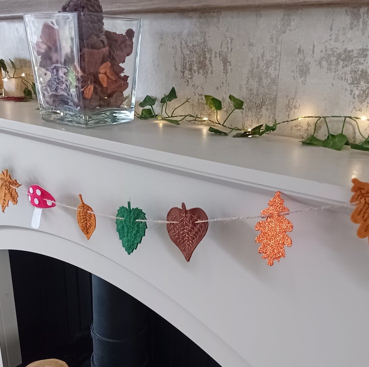 The garland features vibrant autumnal colours- greens, orange, and browns- bringing the warmth and beauty of fall foliage into your home.
