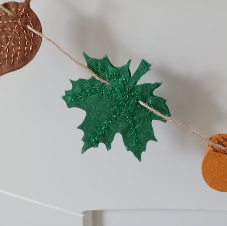 Each leaf is hand-embroidered with shimmering metallic threads on high quality felt. Also includes two glitter felt leaves for an extra touch of sparkle.