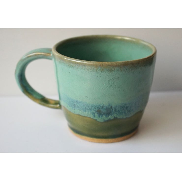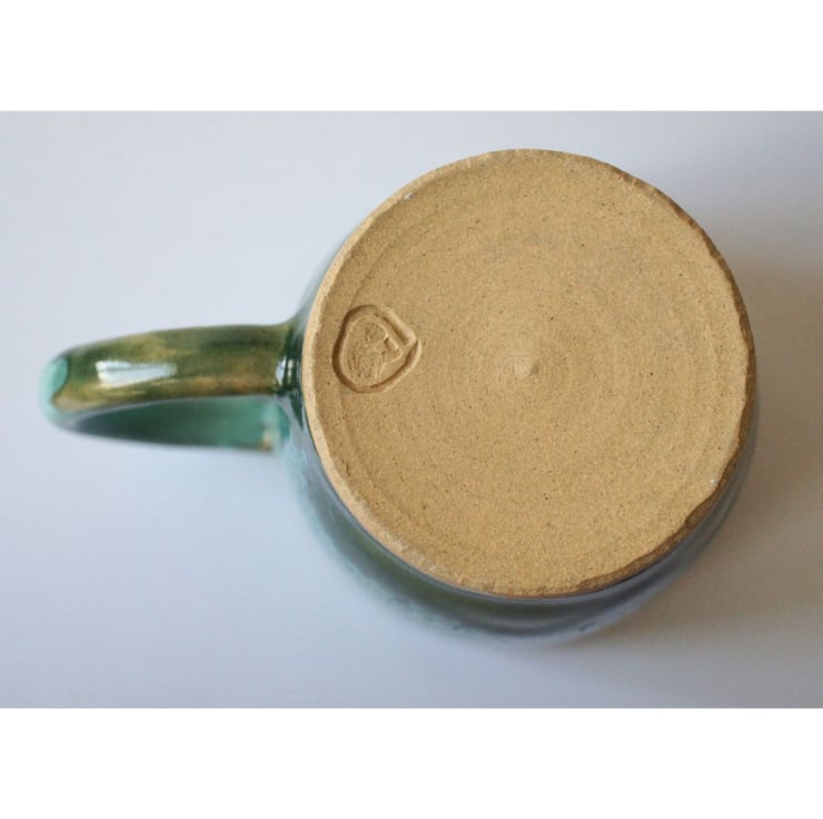 Stoneware mug with food-safe glaze. 8cm height x 8.5cm width, not including handle.