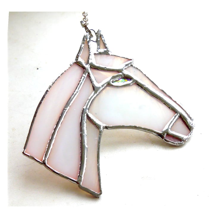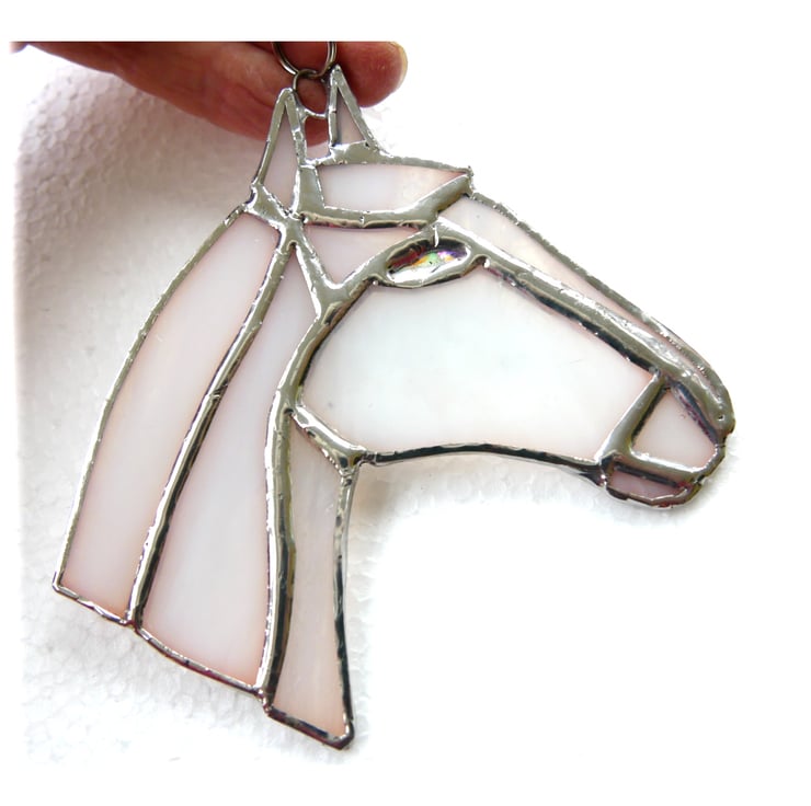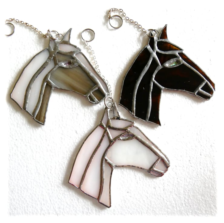 The suncatcher hangs from a little chain which is securely attached to the top of horse. It is approximately 10cm high and wide.