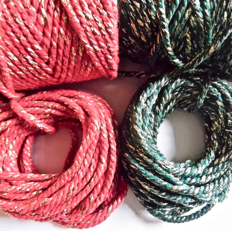 Its made up of 4mm RED cotton twine with a gold metallic thread embedded into it giving it a real sparkling effect.