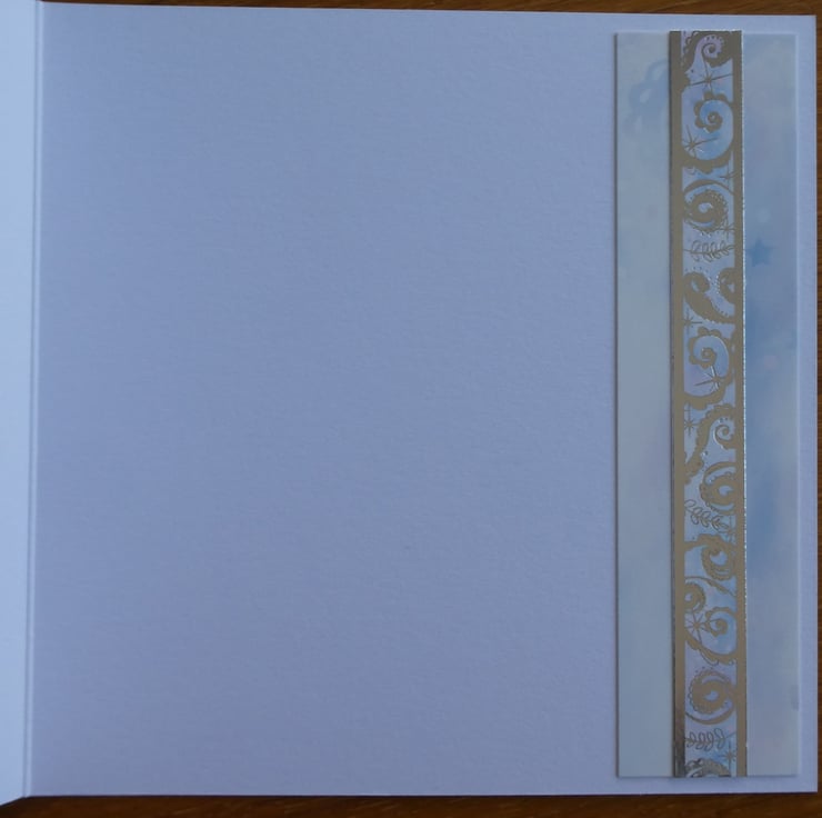 A strip of matching card with a central band of siver foiled swirl card has been added down the right hand edge inside the card for a finished look.