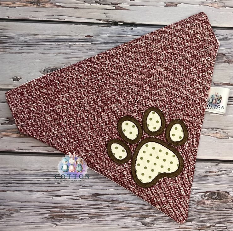 A fun bandana with an appliqué paw print. At Cotton and Fluff we are committed to love our pets back by making bandanas safe, sustainable and unique.