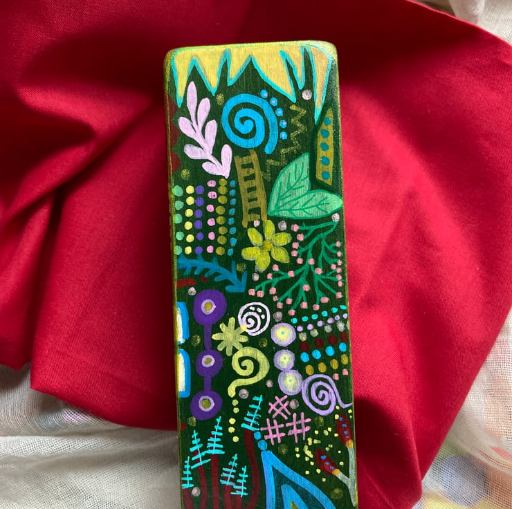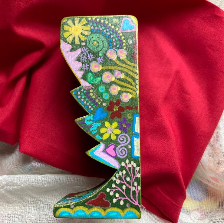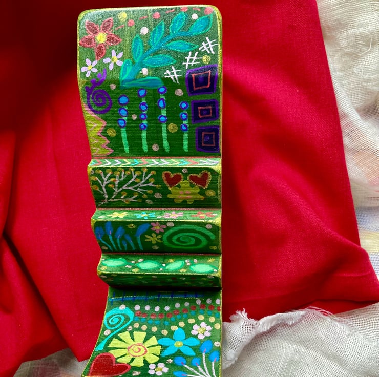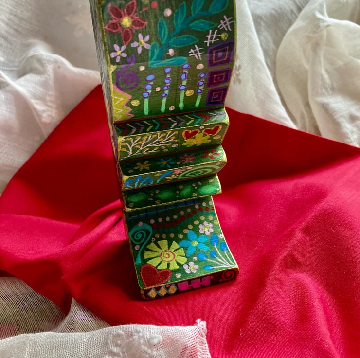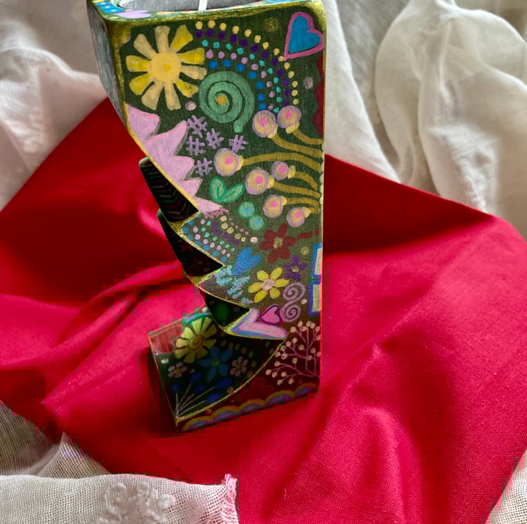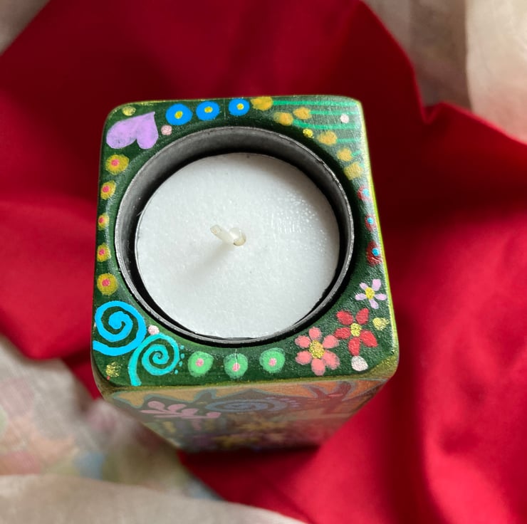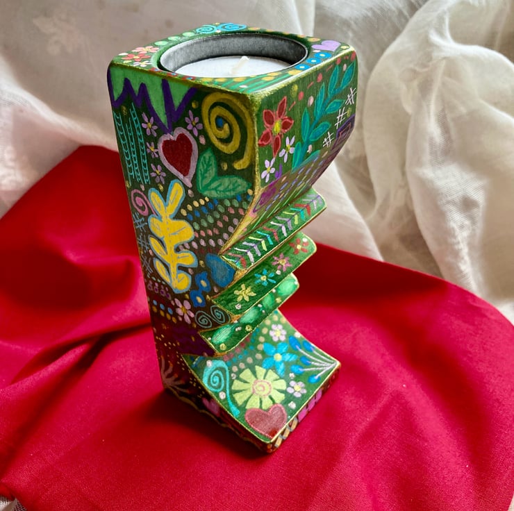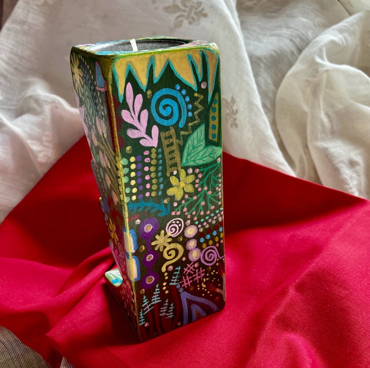 This upcycled and unique hand painted tea light holder has been cleaned up and handpainted in lots of lovely abstract doodles.
