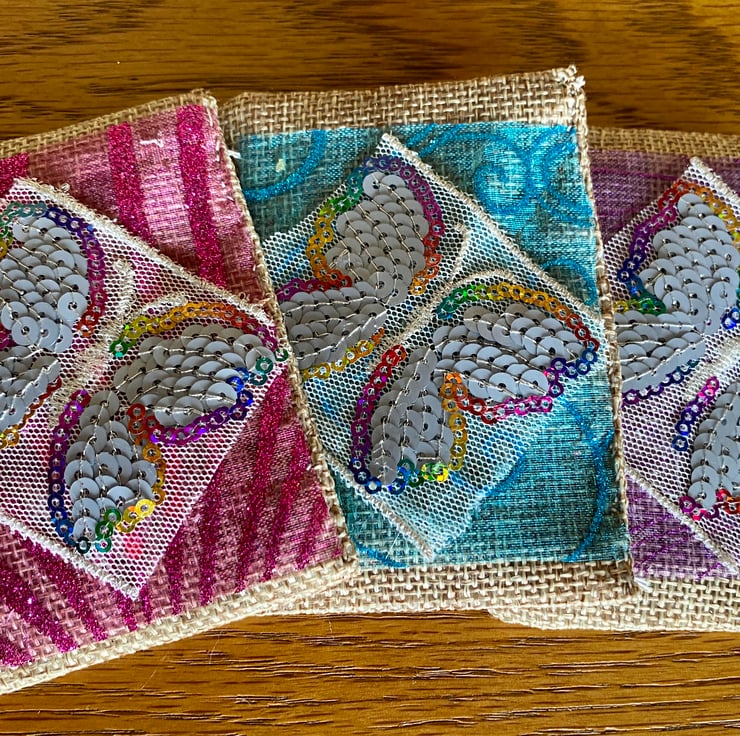 This is a set of 3 hand-sewn lavender bags. The bag is made from hessain and embellished with one of each pink, purple and blue glittered organza and topped with a sequinned organza butterfly. Each one is filled with 5g of Norfolk lavender. This is ideal for an inexpensive Christmas gift or stocking filler, but will be useful all year round. I can gift wrap at no extra expense. The postage is via Royal Mail 2nd class small parcel post. Thank you for looking.