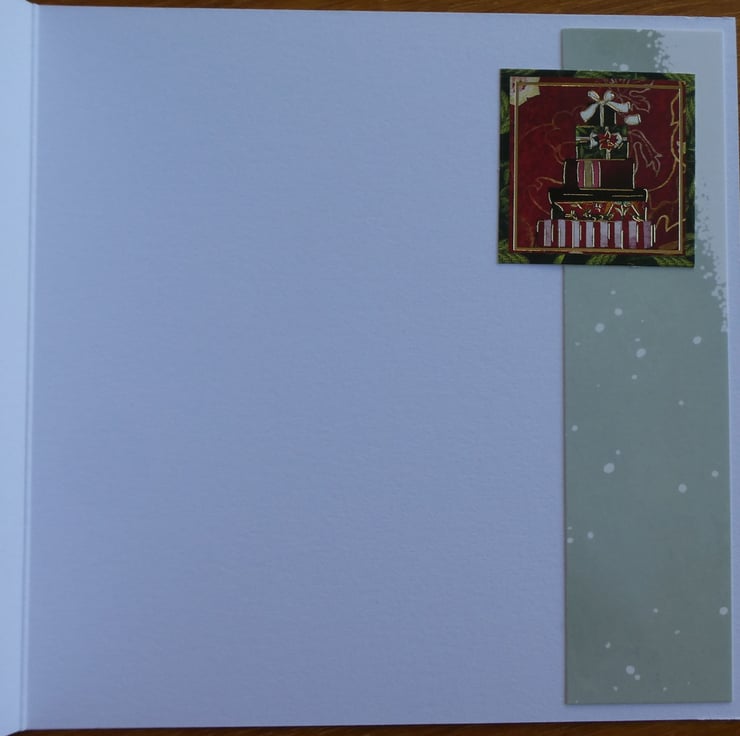 Inside the card is a strip of matching card down the right hand edge, topped with a small square image showing another pile of presents.